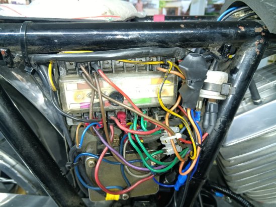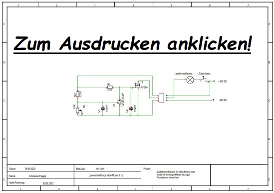 Meine Moto Morini 3 ½ Baujahr 1975 hatte eine rote Kontrolllampe die nach dem Einschalten der Zündung immer leuchtete. Dies ist eigentlich nicht die Aufgabe einer roten Kontrolllampe! Im Zuge meiner Motor-Überholung habe ich ein Gewinde in den Ölkanal geschnitten, einen Druckschalter eingebaut und die rote Kontrolllampe als Öldruck-Warnleuchte verwendet. Der sehr früh schaltende Druckschalter ist später einer Öldruck-Anzeige gewichen und so hatte ich die rote Kontrolllampe wieder frei. Eine Ladekontrolllampe für die Lichtmaschine an der frühen Moto Morini gibt es ja auch nicht, also habe ich mir eine Schaltung zur Ladekontrolllampe überlegt: