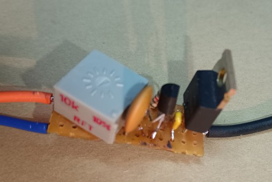 Zum Schluss habe ich die ganze Schaltung mit hochisolierenden Schutzlack (Plastik 70 von Kontakt Chemie) eingesprüht, Schrumpfschlauch darüber und eingebaut. Die Schaltung ist so klein, man kann sie auch ein einem leeren KFZ-Relaisgehäuse eingießen.