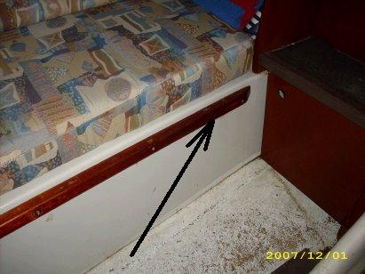 Als erstes muss eine Leiste 30x30 mm (oder ähnliche Größe) unter das Schwalbennest geschraubt werden. Wie weit hinten, das hängt von der Dicke der Polster und dem Winkel der Rückenlehne ab. Die Leiste dient nur dazu, dass das Polster nicht nach hinten durchrutschen kann.